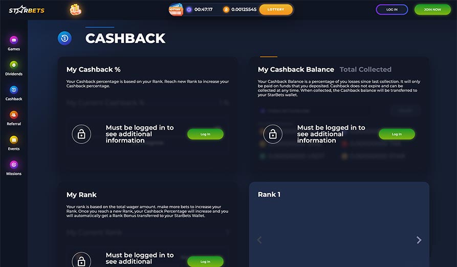 Users can mitigate losses via cashback of a percentage based on their rank in which a player raises their rank to acquire a higher cashback percentage.