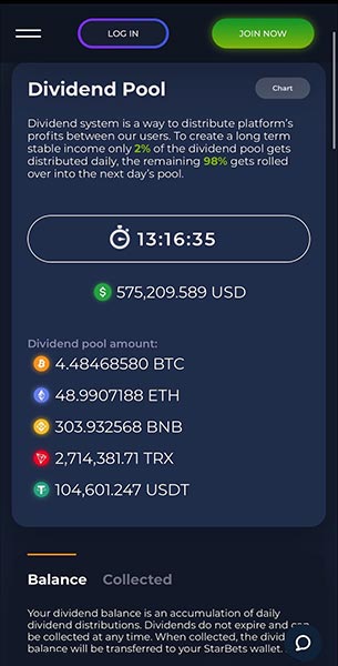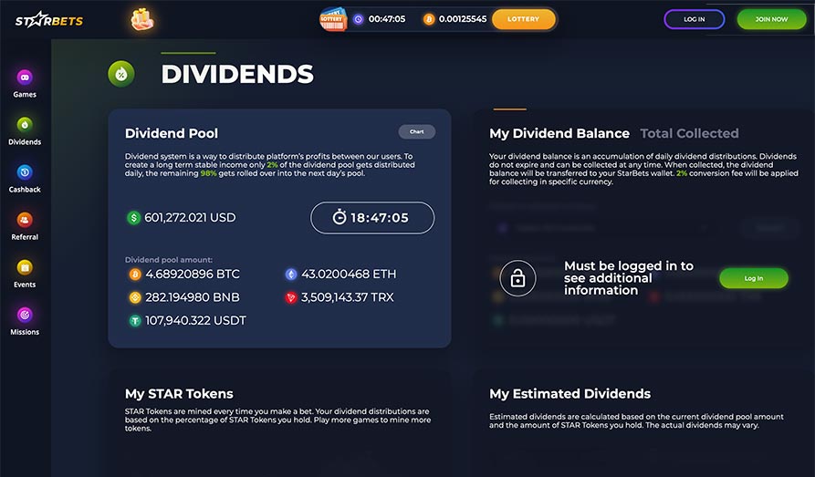 The revenues from betting in any accepted cryptocurrency are accumulated in a Dividend Pool and are distributed to STAR Token holders.