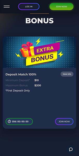 New customers get 100% bonus up to 1000 USD/EUR. Minimum deposit is 10 USD in order to get the bonus. There are also daily tournaments to earn bonuses and cashback for users.